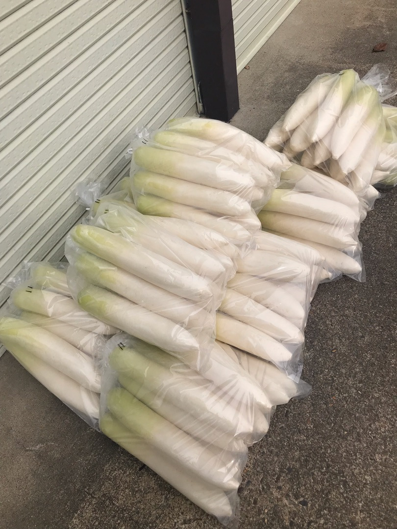 (雪が降る前に慌てて収穫した野菜たち、100本✨)